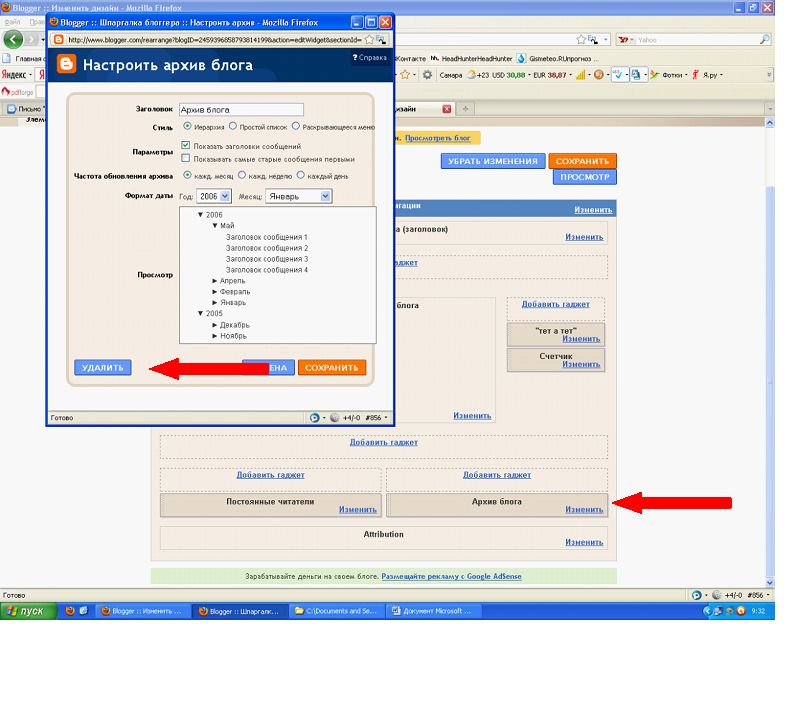 * В "Дизайн"-"Сообщения блога"-"Изменить"-"Параметры страницы сообщения" снимаем верхнюю галочку: